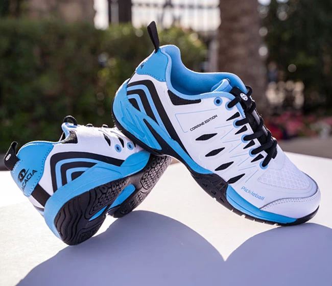 Designed by Corrine Carr and Acacia with the needs of Champion athletes in mind, the Acacia Corrine Carr Signature Edition is Acacia’s first ever pickleball shoe available in standard women’s sizing. The first ever Signature-shoe created for the sport of pickleball and is Acacia’s lightest and most agile pickleball shoe to date. The Upper is constructed of ProFlex material, an elasto-polymer fiber membrane that frames the shoe with a flexible, comfortable support structure. Thermally bonded and stitched wrap-around drag guard made from high grade leather. Micro-honeycomb (MicroHC) mesh material provides breathability for improved air flow and ventilation above toes. Heel Control Stability (HCS) provides an exceptionally strong heel counter to ground movements and to support ankles and heels during rapid lateral movements. Durable ballistic nylon inner lining.