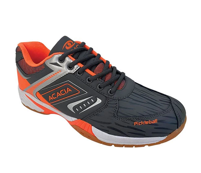 The Acacia Hypershot is a pickleball shoe designed for indoor play. This indoor pickleball shoe is constructed to provide excellent grip on wooden or synthetic surfaces. Made from Napa leather, the Acacia Hypershot features high-abrasion, non-marking, and contoured gum rubber outsoles with added cow-hide toe guards.