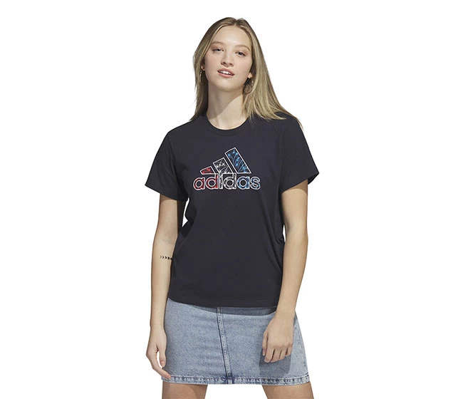 Team USA. You might not be so subtle about your favorite sports teams, but this adidas short sleeve top keeps things a little more mellow with an adidas Badge of Sport filled in with fireworks of red, white and blue. All adidas’ cotton products support more sustainable cotton farming.