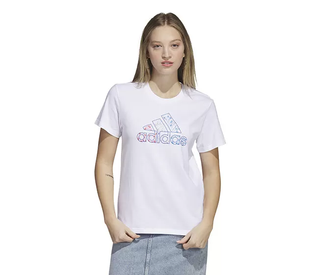 Team USA. You might not be so subtle about your favorite sports teams, but this adidas short sleeve top keeps things a little more mellow with an adidas Badge of Sport filled in with fireworks of red, grey and blue. All adidas’ cotton products support more sustainable cotton farming.