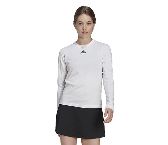 Take your game higher in this adidas long sleeve tennis tee. Its contoured Freelift design allows your shoulders to rotate freely while preventing the hem from riding up during serves and smashes. Moisture-absorbing AEROREADY, mesh panels and built-in UV coverage keep you confident on the court.