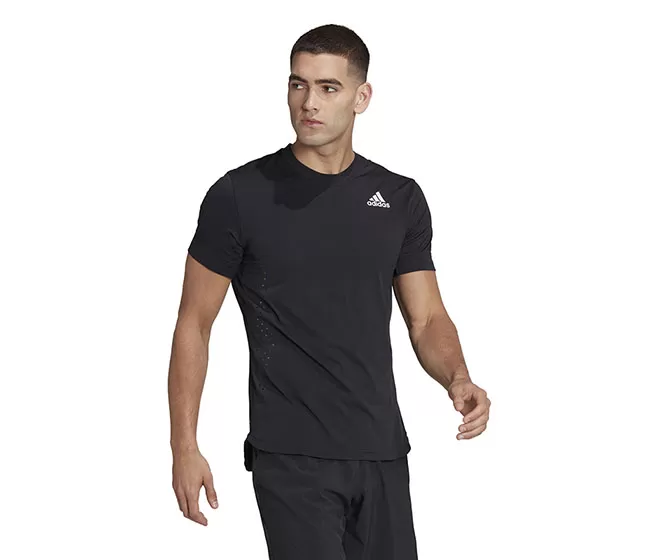 Part of an uplifting collection on show at North America’s biggest tennis tournament. This adidas t-shirt supports overhead play with a FreeLift design that gives you room in the shoulders for smashes and helps stop the back hem from riding up when you land. In the air or on the deck, mesh inserts and moisture-absorbing AEROREADY ensure you take on every challenge in complete comfort. This tee is made with natural and renewable materials as part of our journey to design out finite resources and help end plastic waste.