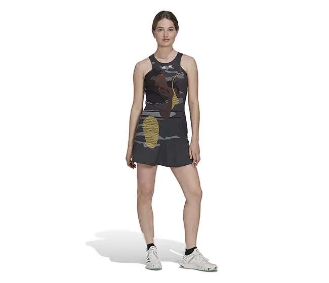 Designed in collaboration with South African fashion brand Thebe Magugu for North America’s biggest tennis tournament. On the front of this adidas dress, a bold design takes its uplifting inspiration from a woman dancing. The super-soft fabric and moisture-wicking AEROREADY are all about comfort. At the back, the Y-strap is specially designed to support hard-hitting tennis. Inner short tights offer additional coverage. Made with a series of recycled materials, and at least 60% recycled content, this product represents just one of our solutions to help end plastic waste.