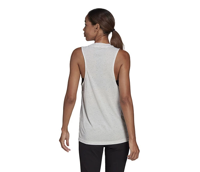 Something you can move in. Something you can relax in. This adidas tank top lets you do it all. No compromises. Just balance. Super-soft material puts comfort at the forefront. Let it hang loosely or tuck it in the droptail hem falls longer in the back to give it that final touch of ease. The mélange look adds subtle visual texture, though the large contrast logo graphic goes the opposite direction of subtlety and flirts with the extreme.