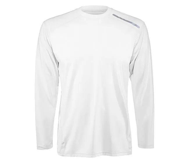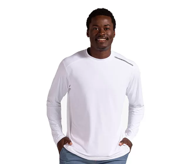 The BloqUV 50+ UPF men’s Jet Long Sleeve Tee is sun protection to be worn alone, as a base layer, swim shirt, rash guard or beach cover up. The long sleeve performance SPF tee offers comfort, freedom of movement and is perfect for running, biking, swimming, boating, skiing, tennis, golf, working out or just looking sharp at leisure.