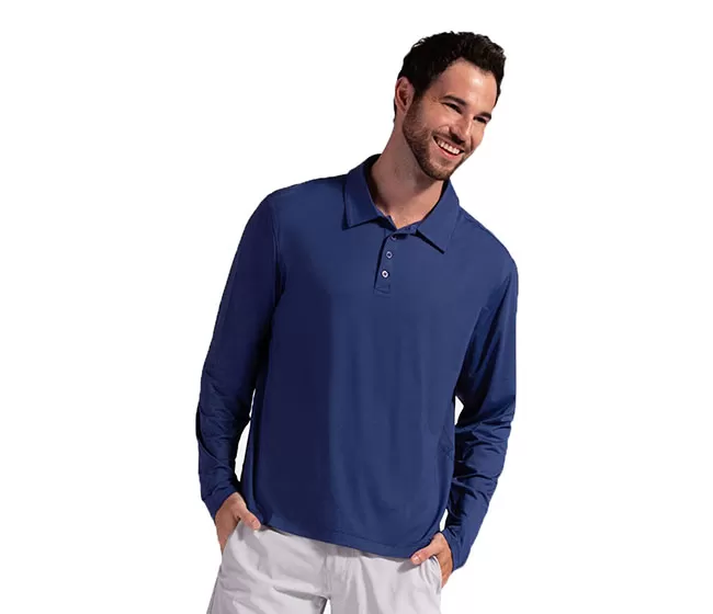The BloqUV 50+ UPF mens sun protective long sleeve polo collared shirt, a long sleeve golf shirt is a customer favorite for tennis, golf and beyond. The classic style, structured collar, four-button placket and cool, moisture-wicking SPF performance fabric keep you looking sharp and feeling fresh. Perfect tennis gift for dad! Wear alone or layer under a windbreaker or blazer. This mens collared shirt is also ideal for golf, tennis, boating, running, working out, walking, boating, fishing, travel and business casual.