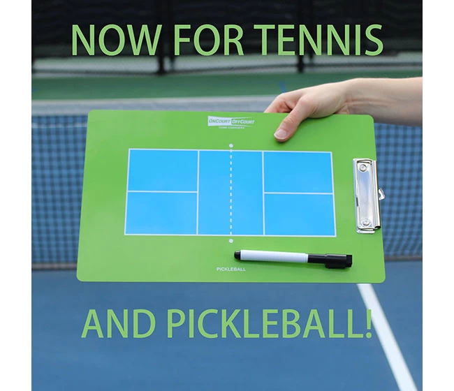 The 9″ x 16″ dry-erase Coach’s Clipboard is a lifesaver when it comes to teaching players where to move and hit on the court. Clip papers on one side and use the tennis court for diagrams on the other. Included dry-erase marker attaches with Velcro.