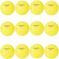 Dura Fast 40 Touranment Pickleballs are the most popular balls used for outdoor pickleball play. They are the pickleball of choice for most outdoor pickleball tournaments. The ball is seamless with a thick wall and heavy weight for increased duarbility. They were previously called the Dura 56 Ball but are now the same ball under the new name.