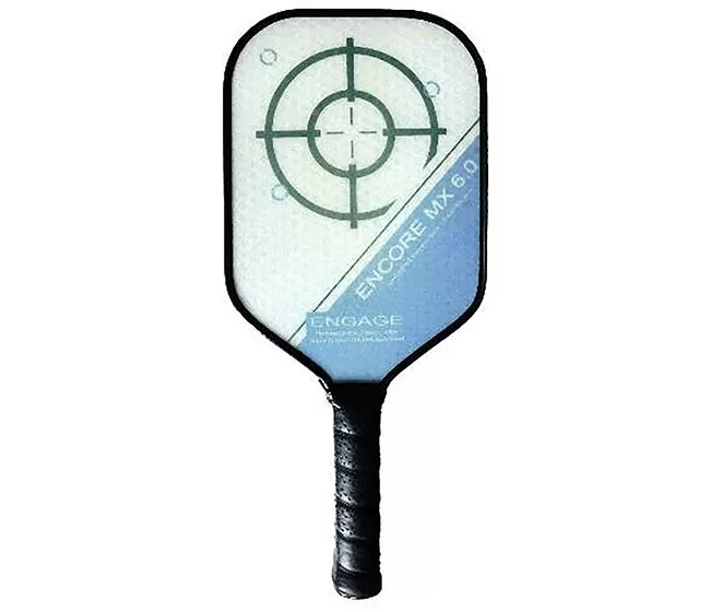 The Encore MX 6.0 Paddle has an impressive length that serves up more power and reach to its handler. The extended face makes it easier to cover the court and handle long shots as the FiberTek skin allows you to redirect pickleballs with its grippy surface. Its ControlPro polymer core is thicker than the average paddle to provide a sturdier feel and reactive sweet spot.