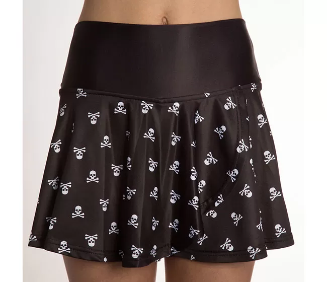 Rock out on the court with the Faye+Florie Black Skulls Holly Skirt. Pair this edgy print with your favorite Faye+Florie Black, White or bright tie-back top!