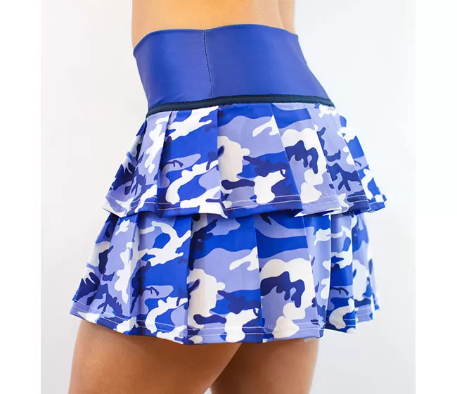Back by popular demand and updated for a fresh look, the Faye+Florie Blue Camo Lisa Skirt combines the toughness of the print with rich blue hues for a perfect look. Pair this vibrant skirt with a Royal Racer or Navy V and you’ve got your court look nailed.