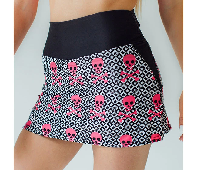 Another amazing design from the Waters Line by Faye+Florie. Bright pink skulls overlay black and white alternating stars to create a print with depth and movement. Pair this edgy print with a Launch Pink, Black or White Tie Back to complete the outfit.