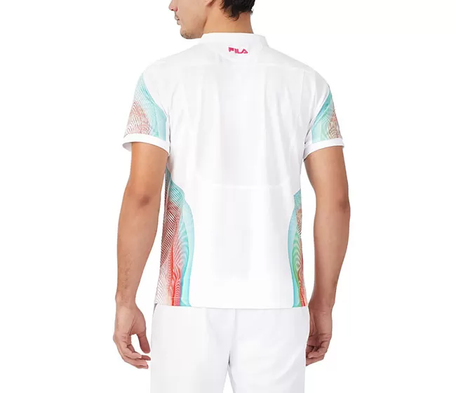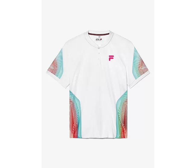Bring modern flair to the court with the FILA Bevans Sonic Henley. This henley is part of a collaboration between FILA and US fashion designer Christopher Bevans. It features a three-button placket, quick-drying material with UV protection, mesh at back for ventilation, glossy FILA logo at left chest, matte silicone logo at upper back, and a FILA x BEVANS interior label.