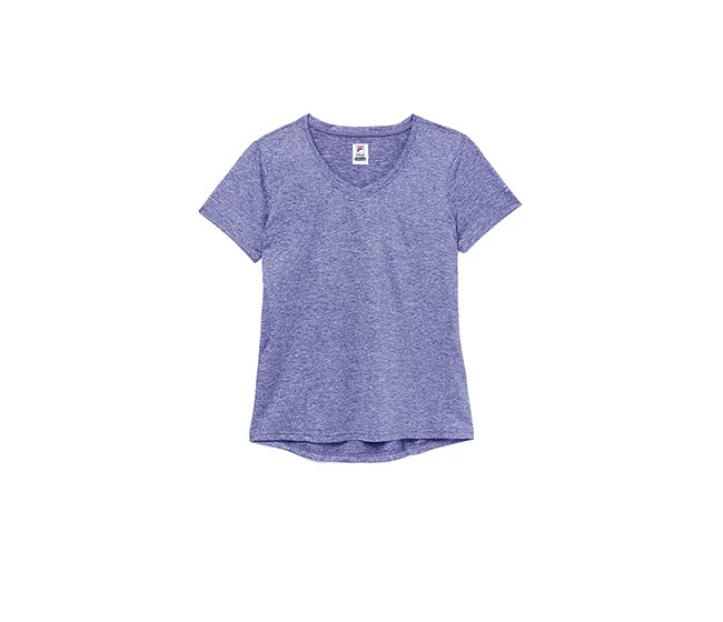 The FILA Pickleball Heathered Short Sleeve V-Neck Tee offers a comfortable fit and sun protection making it great for the courts or casual wear. It also features a rounded, elongated back hem for added coverage and an F-box logo at left sleeve.