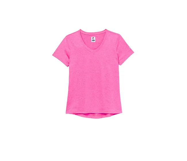 FILA Pickleball Heathered Short Sleeve V-Neck (W) (Pink)