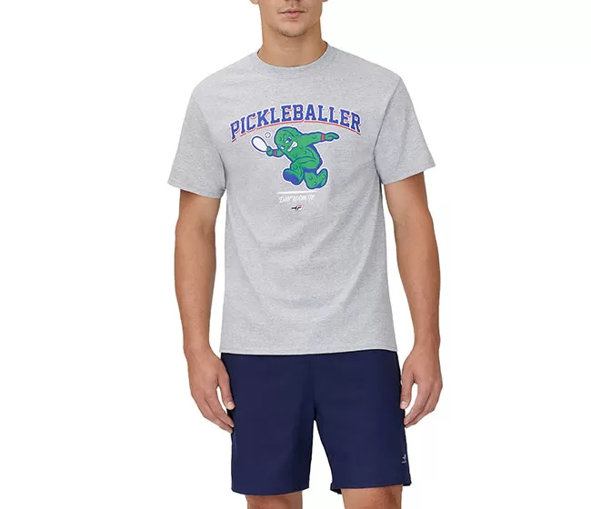 Whether for practice or casual wear, the FILA Pickleballer Tee has a comfortable feel and plenty of pickleball style. This cotton tee features a ribbed neckband and screen print FILA ‘Pickleballer’ graphic on the front.