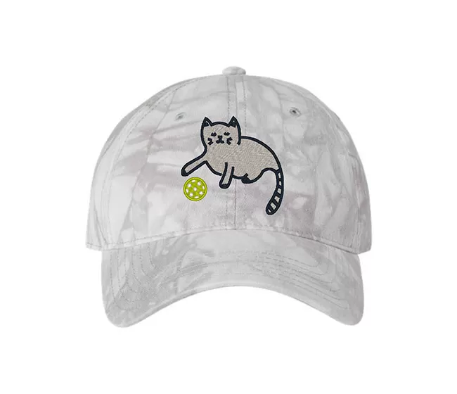 Made from 100% cotton, this low profile unstructured Fromuth Pickleball Tie Dyed Cat Cap features a pre-curved visor, buckle closure and a fun cat embroidered graphic on the front. Tie-dye design gives this cap universal appeal while the soft cotton construction keeps it casual.