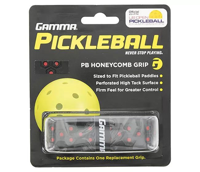 The Gamma Honeycomb Grip features an extra tacky and firm surface. This surface provides high traction for maximum grip feedback and control. The perforated honeycomb surface absorbs moisture to provide a sure firm grip. Sized to fit pickleball paddles.