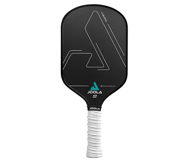 Similar to the Vision CGS 14mm, the Joola Vision CGS 16mm Pickleball paddle is for the player looking for a paddle with a more aggressive shape with a thicker 16mm core and a slightly larger grip. Featuring Joola’s Carbon Grip Surface Technology (CGS), which utilizes a durable, long-lasting Carbon-Flex3 textured surface that grips the ball to create more spin. The Response Honeycomb Polymer Core provides reduced vibration and a generous sweet spot with amazing feedback, feel, and control necessary for dinks, blocks, and drives.