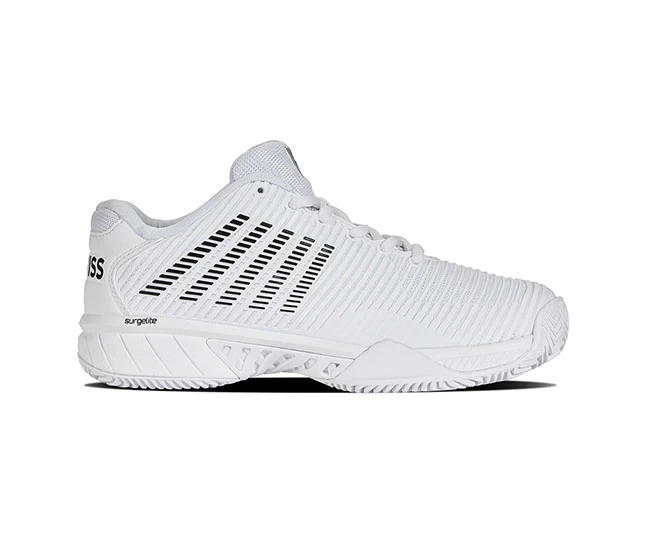 K-Swiss best-selling shoe, the Hypercourt Express 2, now available with a Herringbone outsole ideal for clay courts, is light, comfortable, breathable, and has a generous fit, making it the ideal choice for a variety of playing styles and levels. Durawrap Flex, gives the shoe support with no break-in period, while Surgelite midsole technology provides all day comfort.
