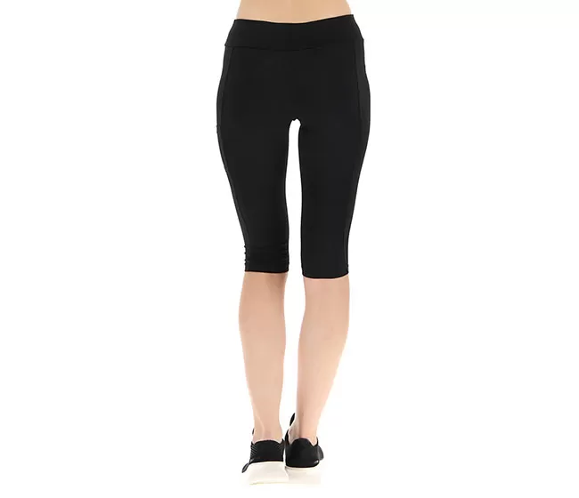 Take the chill off the court in the Lotto Women’s Core 3/4 Tight. This classic cropped tight should be a layering staple of every tennis and pickleball wardrobe. It features a wide waistband, side pocket, and a Lotto heat transfer logo on the left thigh.