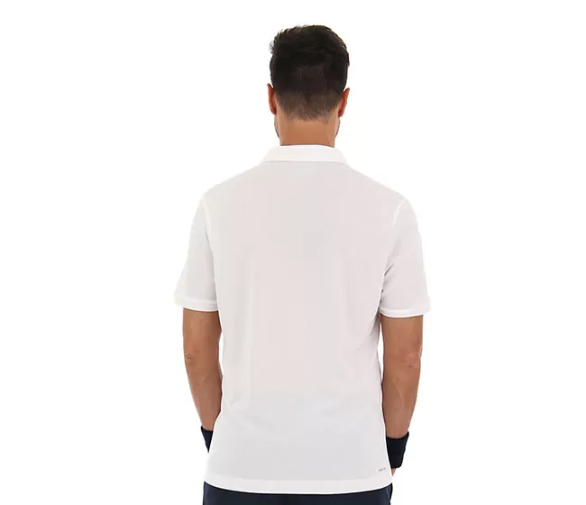 Keep every shot looking sharp in the Lotto Squadra II Polo. This polo features a single button closure, self-fabric collar, textured insets at sleeves and back, contrast stripe detail on sleeves, moisture management, and a heat transfer Lotto logo at left chest.