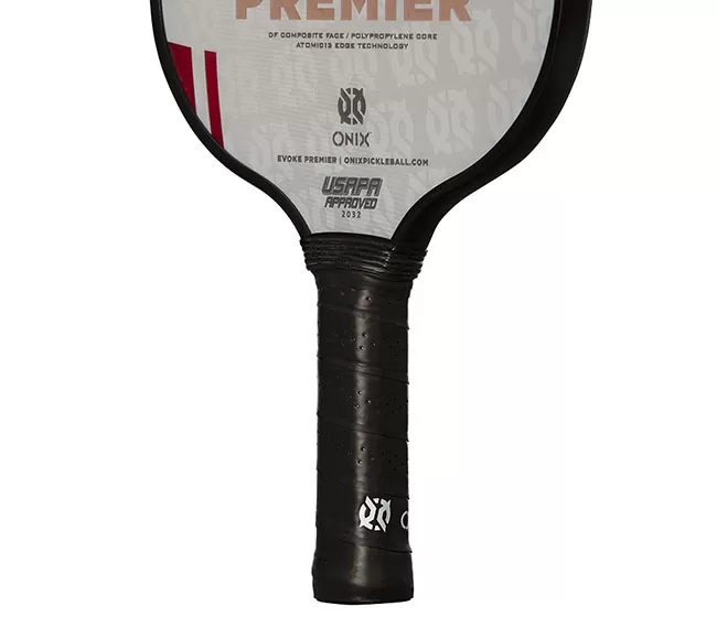 Co-developed by Pickleball National Champions Matt Wright and Lucy Kovalova, the Onix Evoke Premier Pickleball Paddle brings power and precision to your game like never before. The Evoke Premier uses the new Atomic13 Edge Technology, an edge guard specifically designed to disperse shock while increasing power and swing-speed to the paddle. The DF Composite face provides a consistent minimal coating on the surface to soften the ball without losing any spin or pop off the composite face. The precision cut polypropylene core delivers incredible touch to the medium weight (standard) paddle (7.8-8.2 oz.). The Impact Paddle shape (16” x 8”) is perfect for slightly increasing your reach and maximizing your baseline power, making the Evoke Premier the most powerful and solid paddle in the ONIX Pickleball lineup.