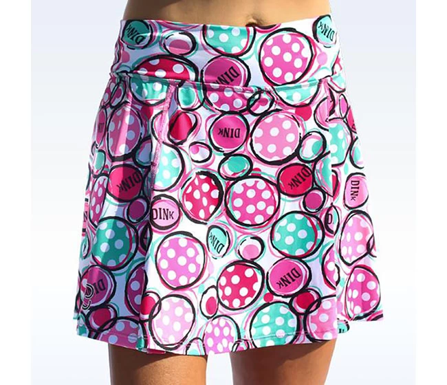 Dink 2 was created with a white background, pickleballs in shades of pinks and mint green, featuring the text “Dink” in black along with other black accents.