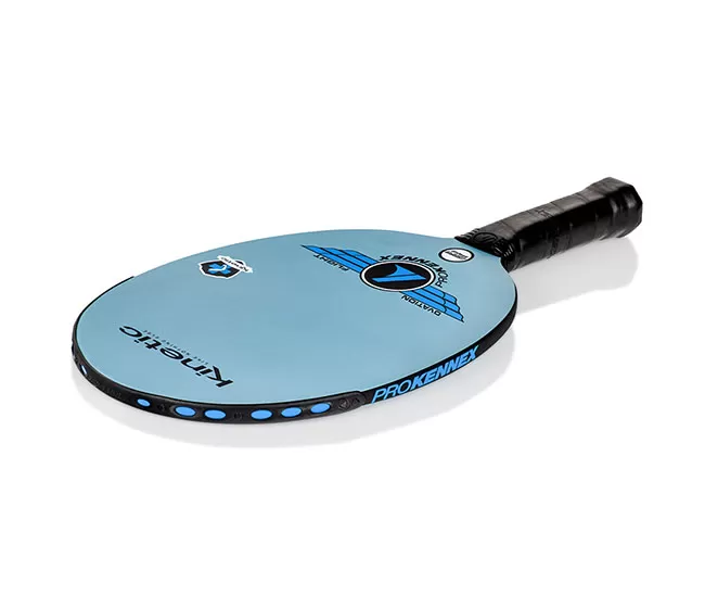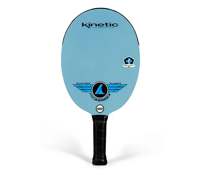 Engineered for maneuverability with wind resistant edgeless construction and thin core technology, the Pro Kennex Ovation Flight paddle is lightning in your hand. Built for quickness and reflex enhancement, the paddle boasts unparalleled tip speed. With the Kinetic shock absorbing system, touch, feel, and kitchen play are all enhanced bringing the best of both worlds to the Ovation Flight.