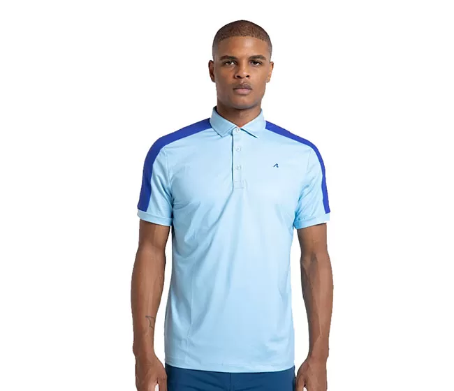 The Devon Polo is subtle and strong with a light-to-dark ombré’d hue. The collar matches the darker shade, offering an interesting and eye-catching polo.