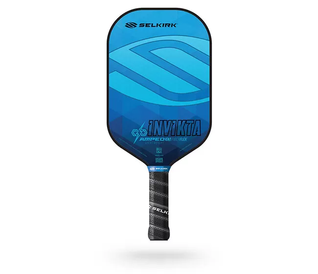 The Selkirk AMPED Invikta Light brings an increased sweet spot size compared to traditional elongated paddles, along with a long handle for full court and full power with all of the control of our Polypropylene X5 Core Technology and our FiberFlex fiberglass surface working for you. It is the brainchild of National Champion Tyson McGuffin. This is the weapon of choice for conquerors of the court! With the Invikta’s lightweight version averaging 7.3 – 7.7oz, you are sure to see improvements with your reaction time at the net.