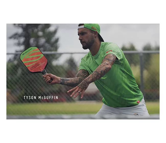 Selkirk’s Electrify Series is the new vibrant look created for those hot summer months. With two bright colors to Electrify your game, you’ll be ready to take on anything on the court. The Electrify TM Pro Crew is chosen by world champion pickleball player Tyson McGuffin and features Tyson’s signature logo on the left sleeve. Breathable mesh back for added coolness and comfort during those long hourse on the pickleball court.