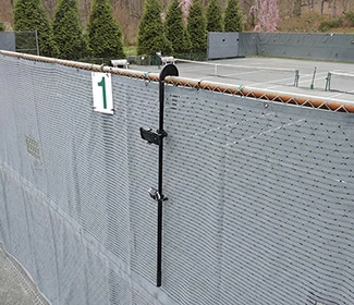 - Effortlessly hangs on standard tennis fence, net, or indoor screen
