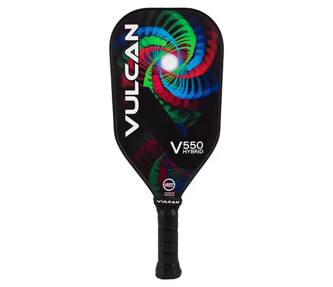 The Vulcan V550 Hybrid Pickleball Paddle weighs in at an average of 7.9 oz, giving the strength needed to put away the ball without tiring out the user. The polypropylene core gives you extra strength to every hit, and the carbon fiber face maintains control of the ball. The Vulcan 550 Hybrid Pickleball Paddle provides the extra reach and balance for a player to outmaneuver their opponents.