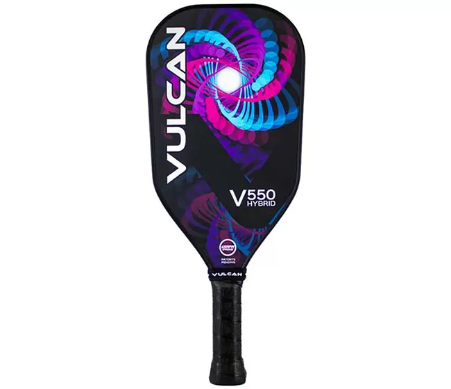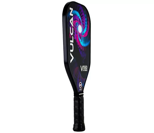 The Vulcan V550 Hybrid Pickleball Paddle weighs an average of 7.9 oz which will give you the needed strength for put aways without tiring your arm. The polypropylene core adds strength to every hit while the carbon fiber face ensures control. The Vulcan V550 Hybrid Pickleball Paddle offers extra reach with a balanced touch that lets you outmaneuver opponents.