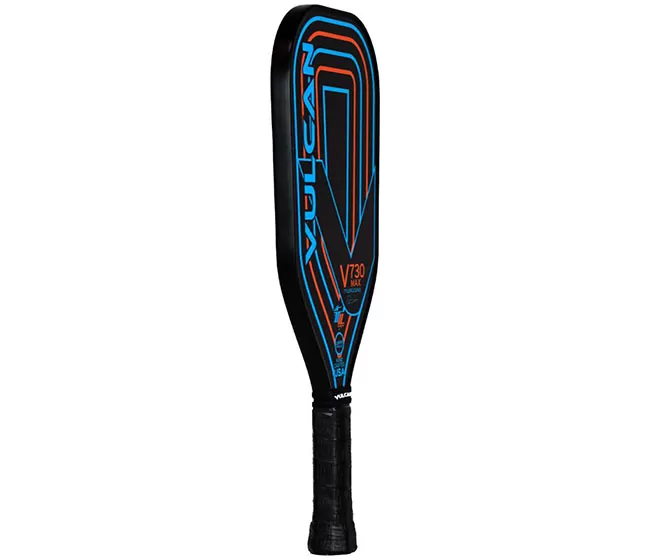 The Vulcan V730MAX Pickleball Paddle is Team Vulcan Pro Tyler Loong’s signature model and features his favorite elongated shape so it is designed for extra reach plus leverage, so it is excellent for doubles and singles. Produces maximum power while also delivering maximum feel for extraordinary control. Engineered with remarkable balance so it feels and plays much lighter than its actual mass. Made to a popular weight of 8.0 oz. (+/- 0.2). Available in Loong’s Circuit design in blue and orange with his signature and TL logo. Handcrafted in the USA.